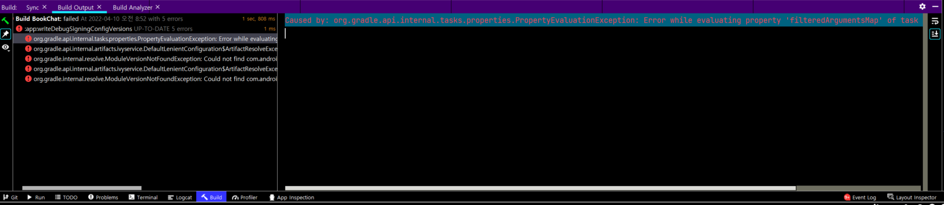 Caused by: org.gradle.api.internal.tasks.properties.PropertyEvaluationException: Error while evaluating property 'filteredArgumentsMap' of task ':app:kaptGenerateStubsDebugKotlin'