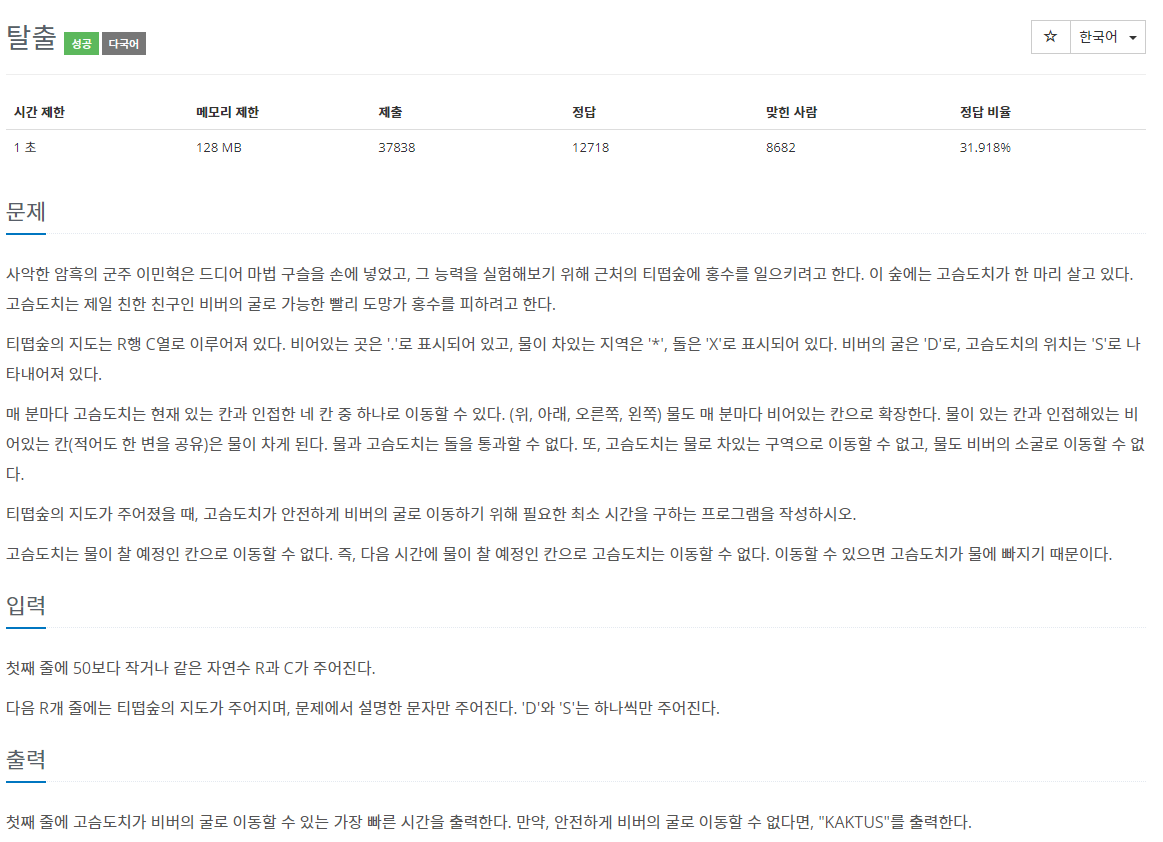 lateinit var dp : Array<Array<Int>> //고슴도치가 지나온 길을 체크인 하기 위해