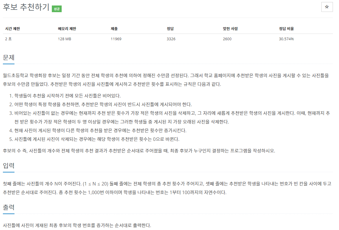 링크 : https://www.acmicpc.net/problem/1713