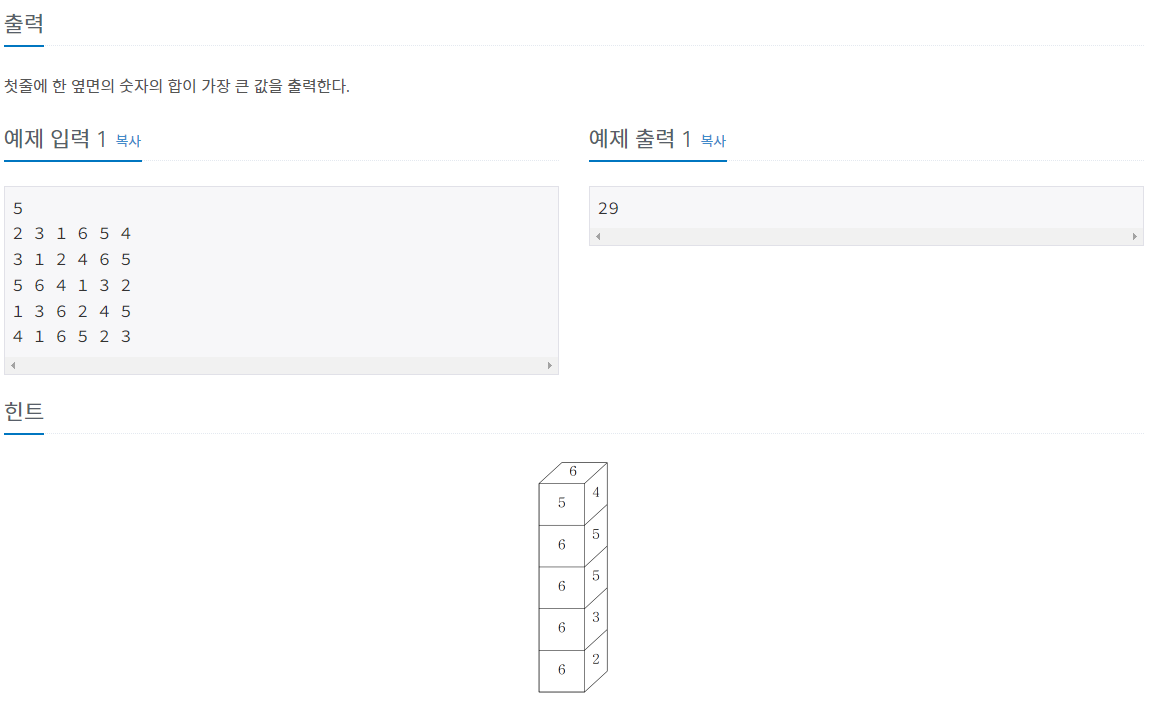 링크 : https://www.acmicpc.net/problem/2116
